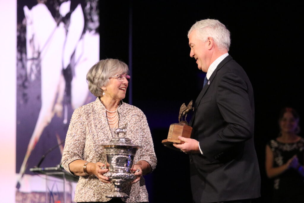 The evening’s festivities honored equestrians who achieved great results in competition and industry leaders who made significant contributions to the sport. The USEF Lifetime Achievement Award went to Olympian Lendon Gray, whose competitive accolades and contributions to U.S. dressage through her Dressage4Kids organization are noted in the industry. U.S. eventing Olympian Liz Halliday was named the International Equestrian of the Year, while hunter rider/trainer Nick Haness was the National Equestrian of the Year.