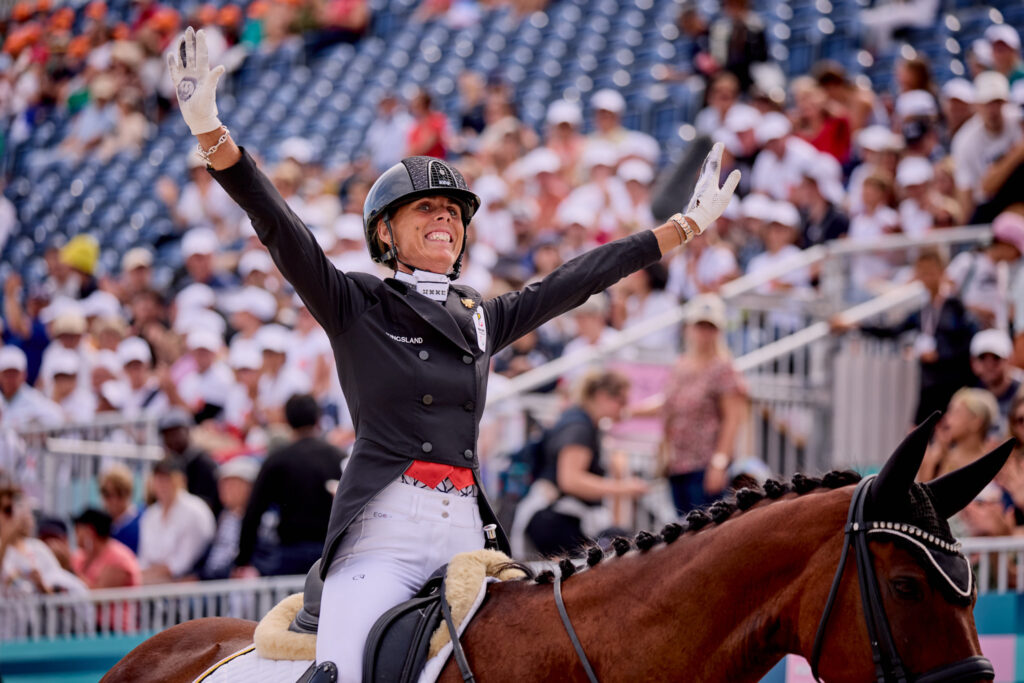 Belgium’s Michèle George showed her enduring class as she won her sixth Paralympic gold medal, defending her Grade V Individual title on her mount Best of 8. The 50-year-old, who won double individual golds at Tokyo 2020, finished well clear with a superb score of 76.692% to take her overall Paralympic medal tally to seven.