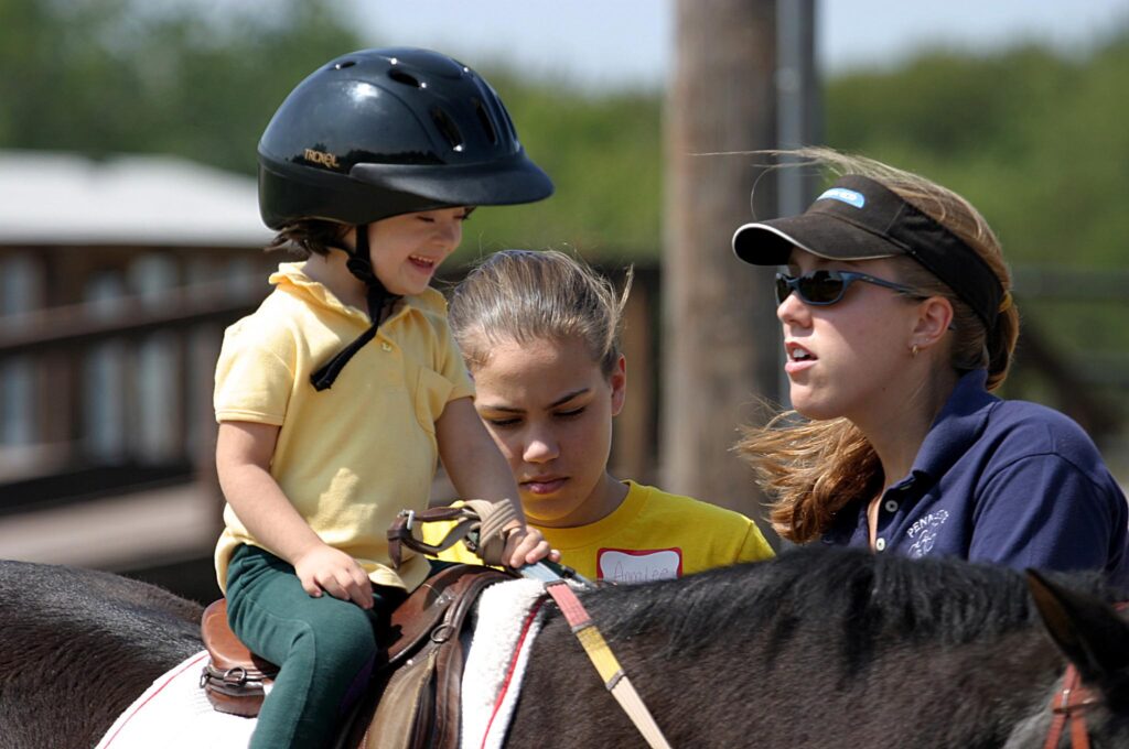 The side-walker role is completely client-focused, so it does not require previous horse experience but will get you out to the barn. Stall muckers and aisle sweepers are always in demand.