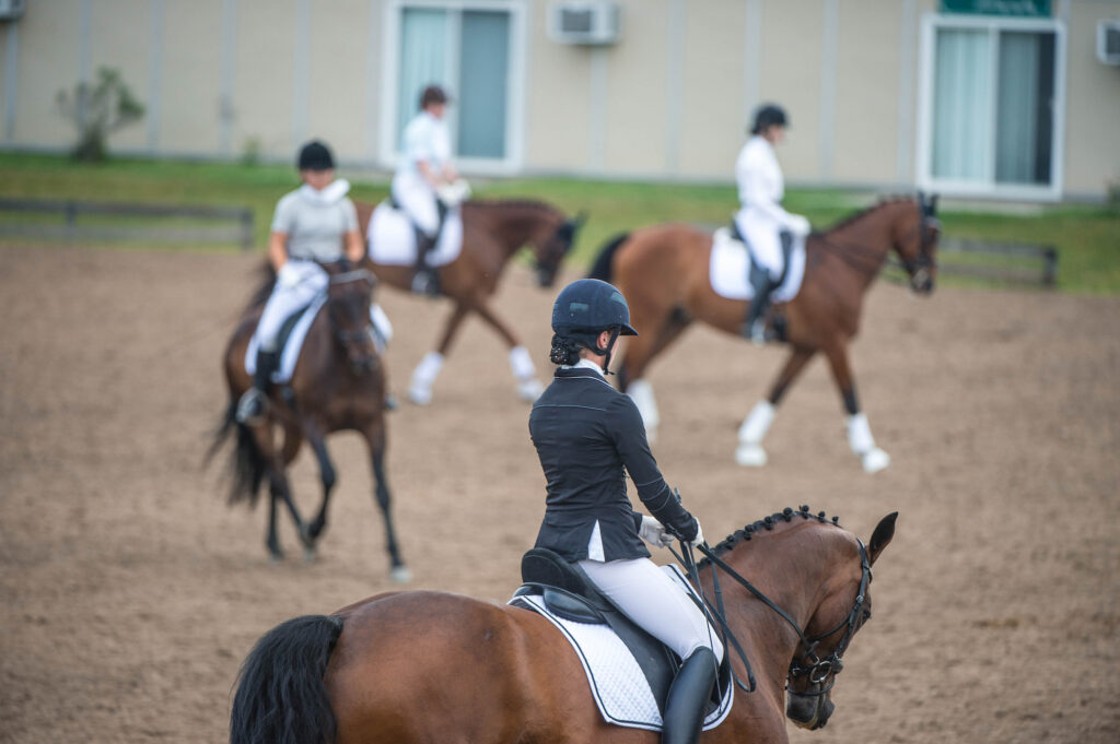 Because the IDA show system is designed specifically for collegiate equestrians, many of whom don’t own a horse or have their horse at school, it eliminates the challenges of ownership by featuring a catch-riding system. At a show, riders are randomly assigned a horse from the host university’s stable and given 10 minutes to develop a basic understanding of the horse before the official test. Catch riding is one of the unique challenges that IDA poses, and even riders who have participated in Young Riders at Prix St. Georges may find riding in IDA challenging.