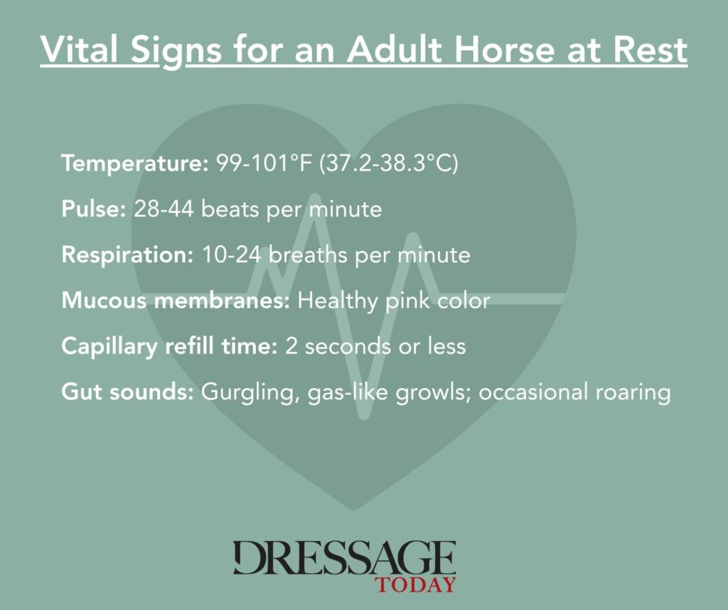 All owners should know how to take their horses’ vital signs to assess their well-being. Vital signs measure the basic body functions of a horse, including temperature, pulse and respiration as well as other indicators such as mucous membranes, capillary refill time and gut sounds.