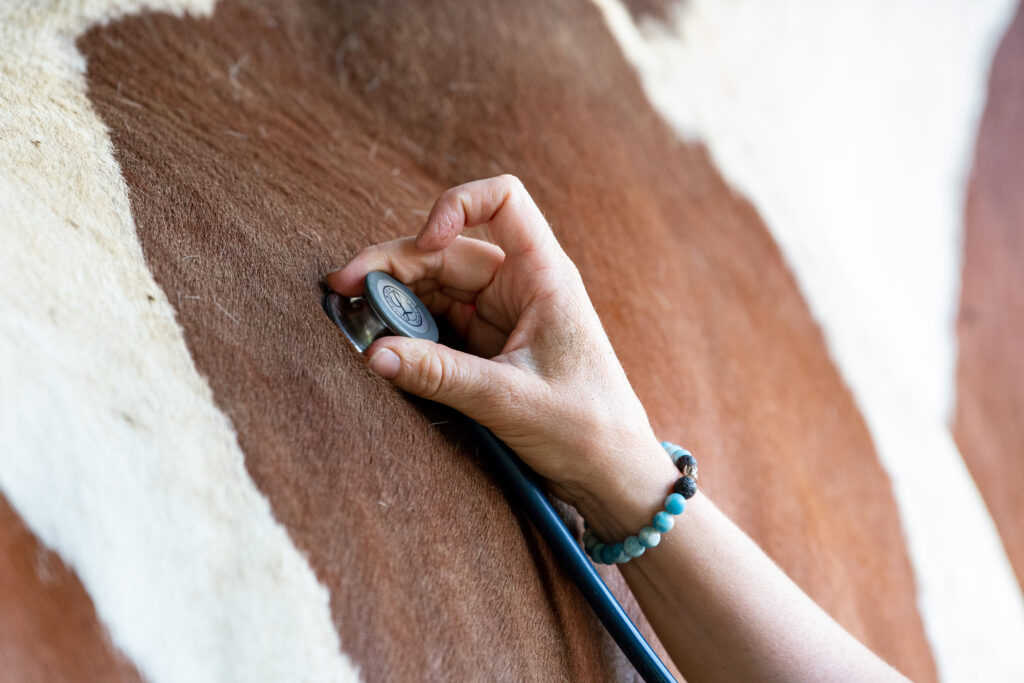 As a horse digests food, his gut will make rhythmic gurgling, gas-like growls and occasionally roaring sounds. You can check your horse’s gut sounds by placing your ear or a stethoscope against both sides of his abdomen—high and low. A healthy horse’s gut will make the routine digestive sounds, but prolonged silence could indicate an abnormality or colic.