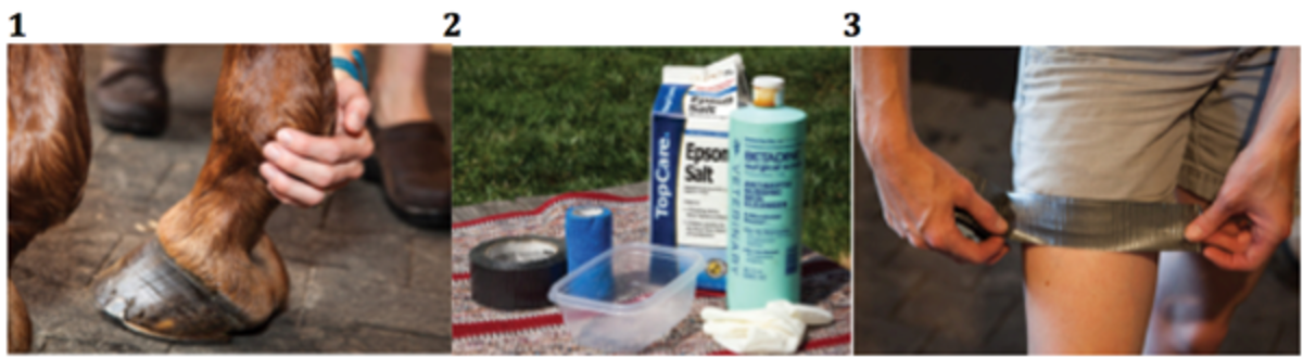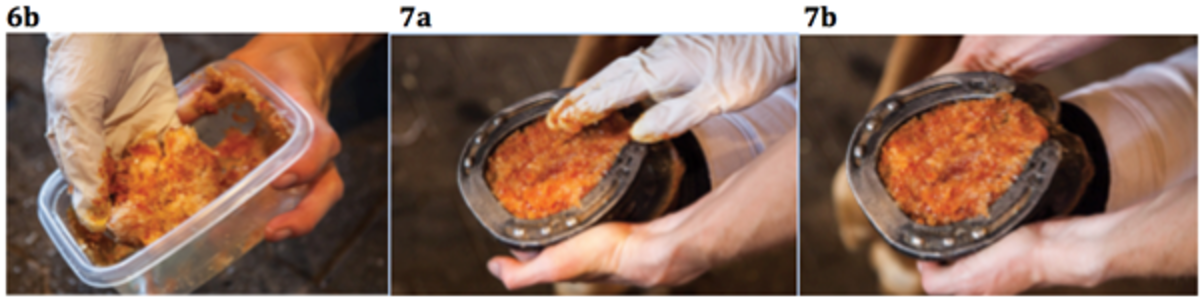 2. The most basic form of hoof packing consists of Epsom salts and povidone-iodine solution.