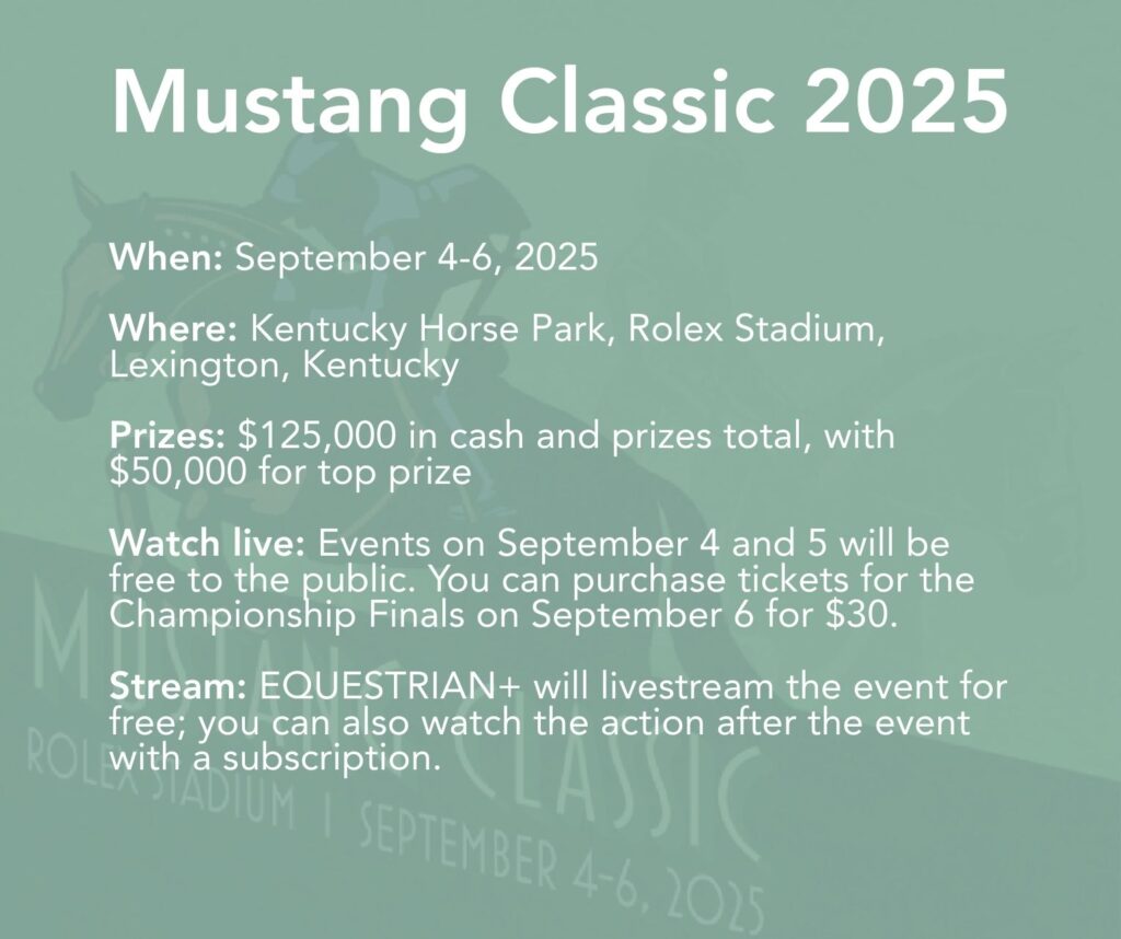 Above all, she highlights the versatility of mustang equine athletes and says once you establish a genuine connection with a wild horse, that trust enables you to go any direction. “Mustangs are becoming more and more popular. They come in every shape, size and color, and we’re seeing them competing and excelling in dressage, eventing and jumping,” Wallace said. “The Mustang Classic allows us to be ambassadors for these horses to show people what they’re capable of.”